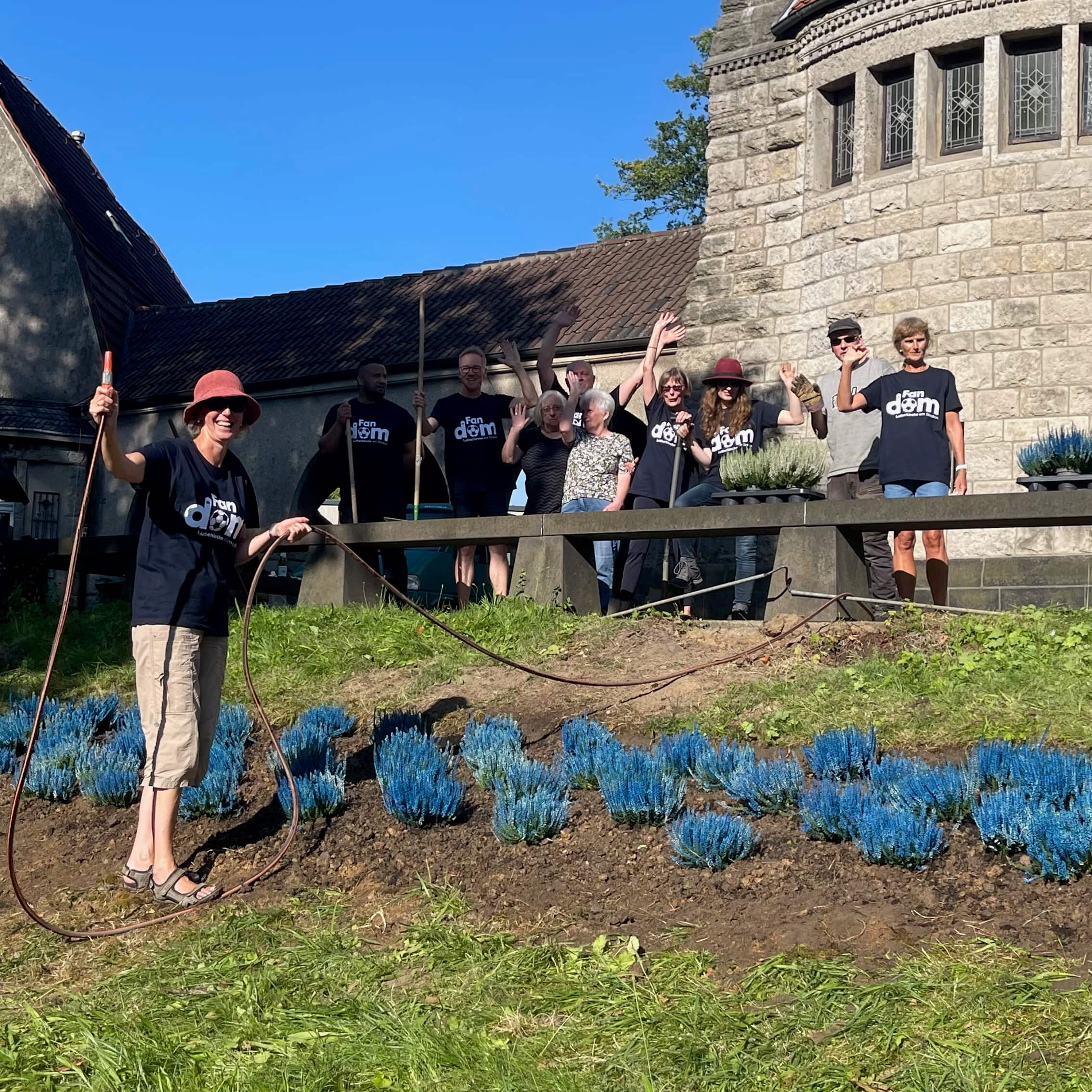 „Der FanDOM entstand in einem Kreativ-Workshop von BECKDESIGN. Unterschiedliche Menschen aus der Leitungsebene der Gemeinde schwitzten einen Tag gemeinsam und brüteten dieses innovative Angebot aus. Die Idee des FanDOMs konnte sofort alle begeistern. Nur wenige Schritte von der Kirche in der Lutherkurve entfernt liegt das Stadion. Tausende Fans strömen an jedem Spieltag an dem altehrwürdigen Gebäude vorbei. Nun öffnet es seine Türen für alle, die Schatten oder Wärme suchen. Man fragt sich nur: Warum ist man nicht früher darauf gekommen?“