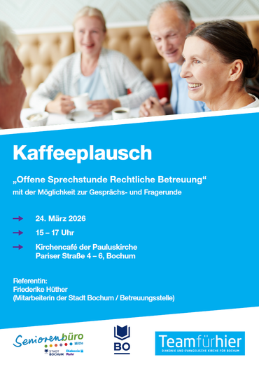 Offene Sprechstunde rechtliche Betreuung im Kirchencafé der Pauluskirche mit der Möglichkeit zur Gesprächs- und Fragerunde